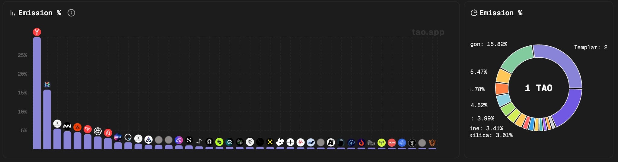taostats.io for flow and emission data.