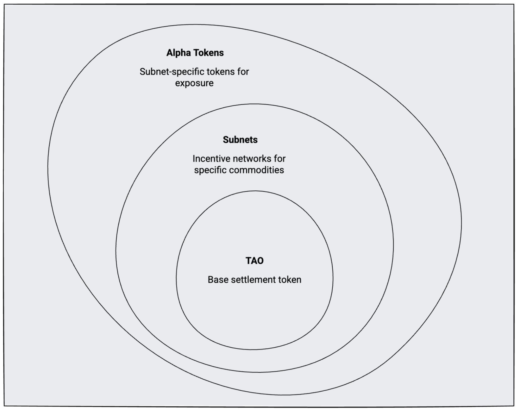 Layer 3 - Alpha tokens: Subnet-specific tokens created when TAO is staked into a subnet’s AMM pool. These are the actual position-taking instruments for concentrated subnet exposure.